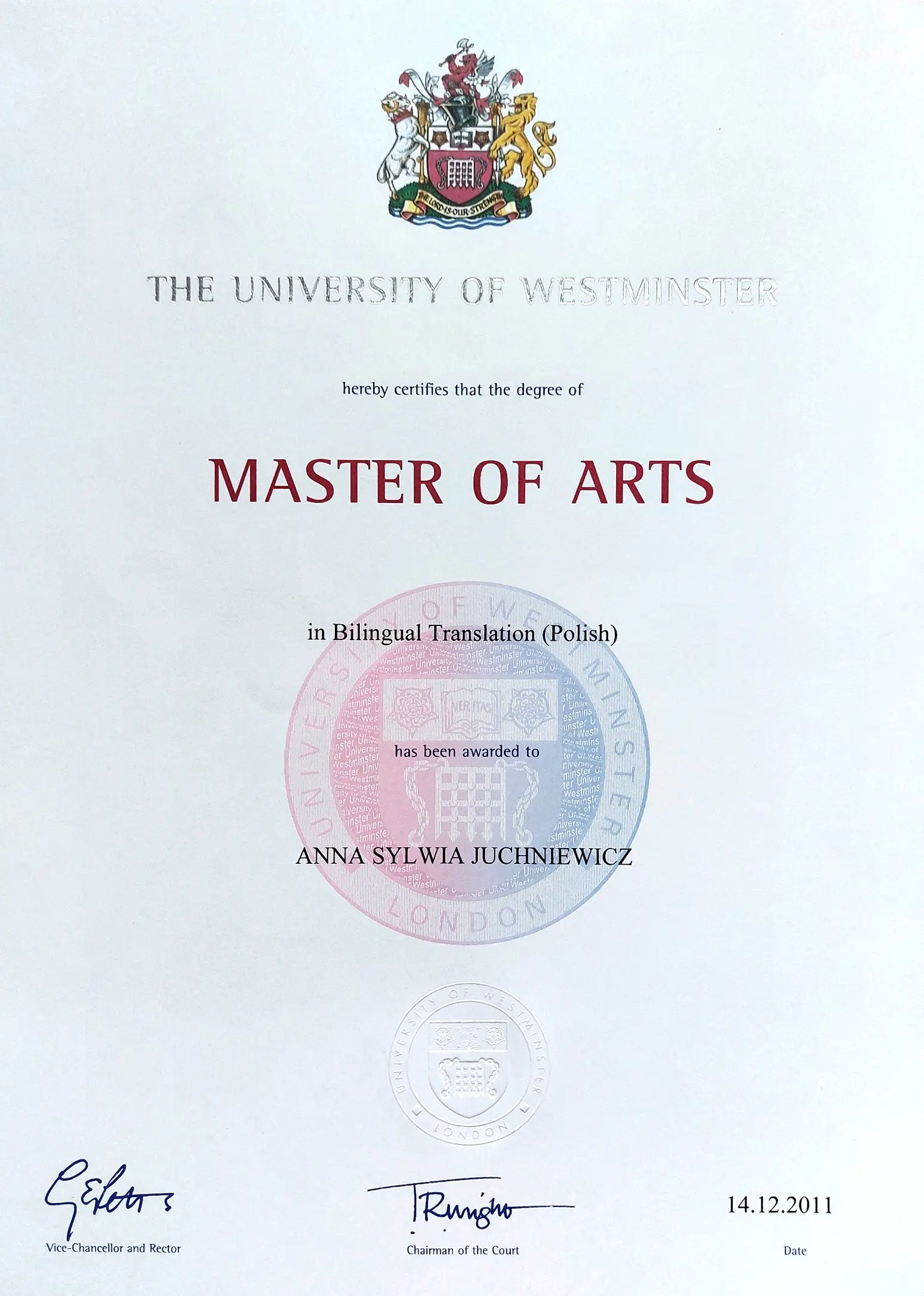 Z wykształcenia nauczyciel i tłumacz języka angielskiego z dyplomem University of Westminster w Londynie. Z miłości szczęśliwa Kobieta, Żona, opiekunka zwierzaków i przyjaciółka lasów, a także intuicyjna badaczka pola morficznego poprzez świadomość.
