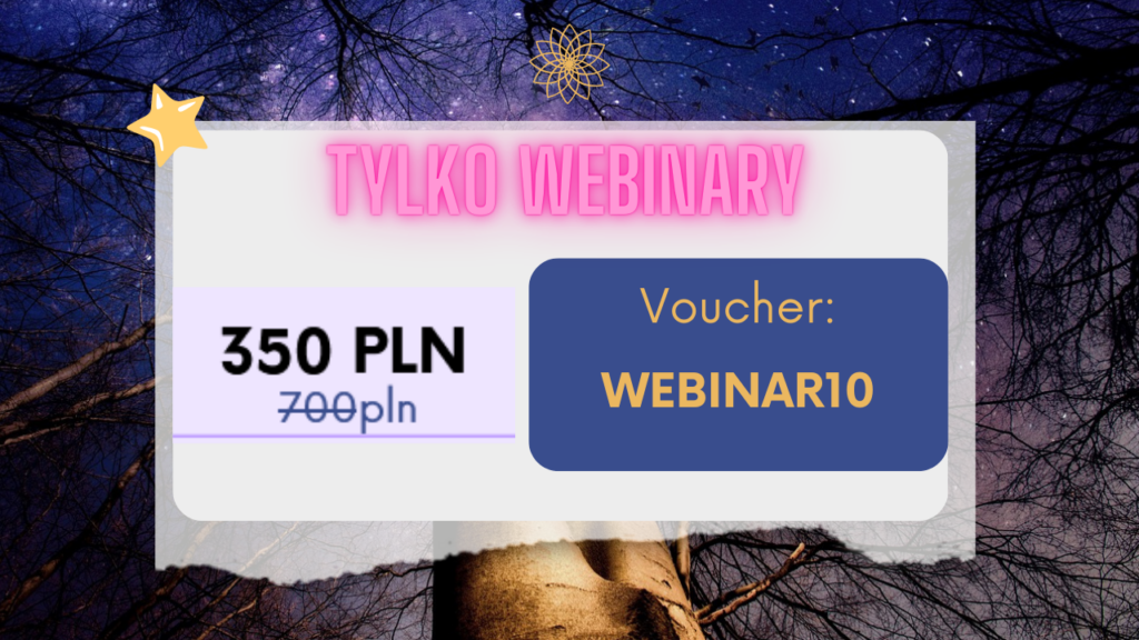Opłacając swój udział w całodniowych warsztatach stacjonarnych w Białymstoku automatycznie otrzymasz dostęp do webinaru, który odbędzie się kilka dni przed danym warsztatem. Będziesz mógł/mogła zapoznać się z teorią, którą stacjonarnie będziemy praktykować, a także doświadczysz głębokiego procesu w transie, który będzie stanowił preludium do pracy warsztatowej.